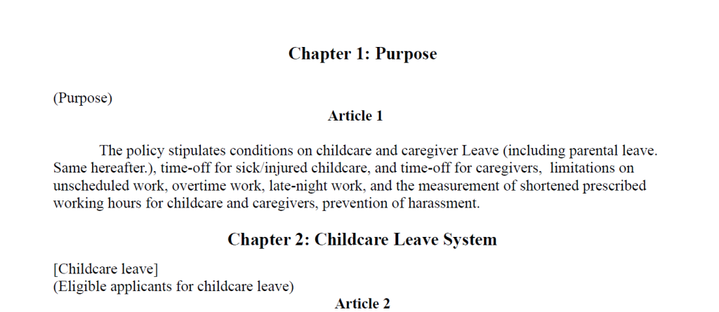 育児介護休業規程(英語版)、職場におけるハラスメントの防止に関する規定(英語版)等のご提供をスタートいたしました。